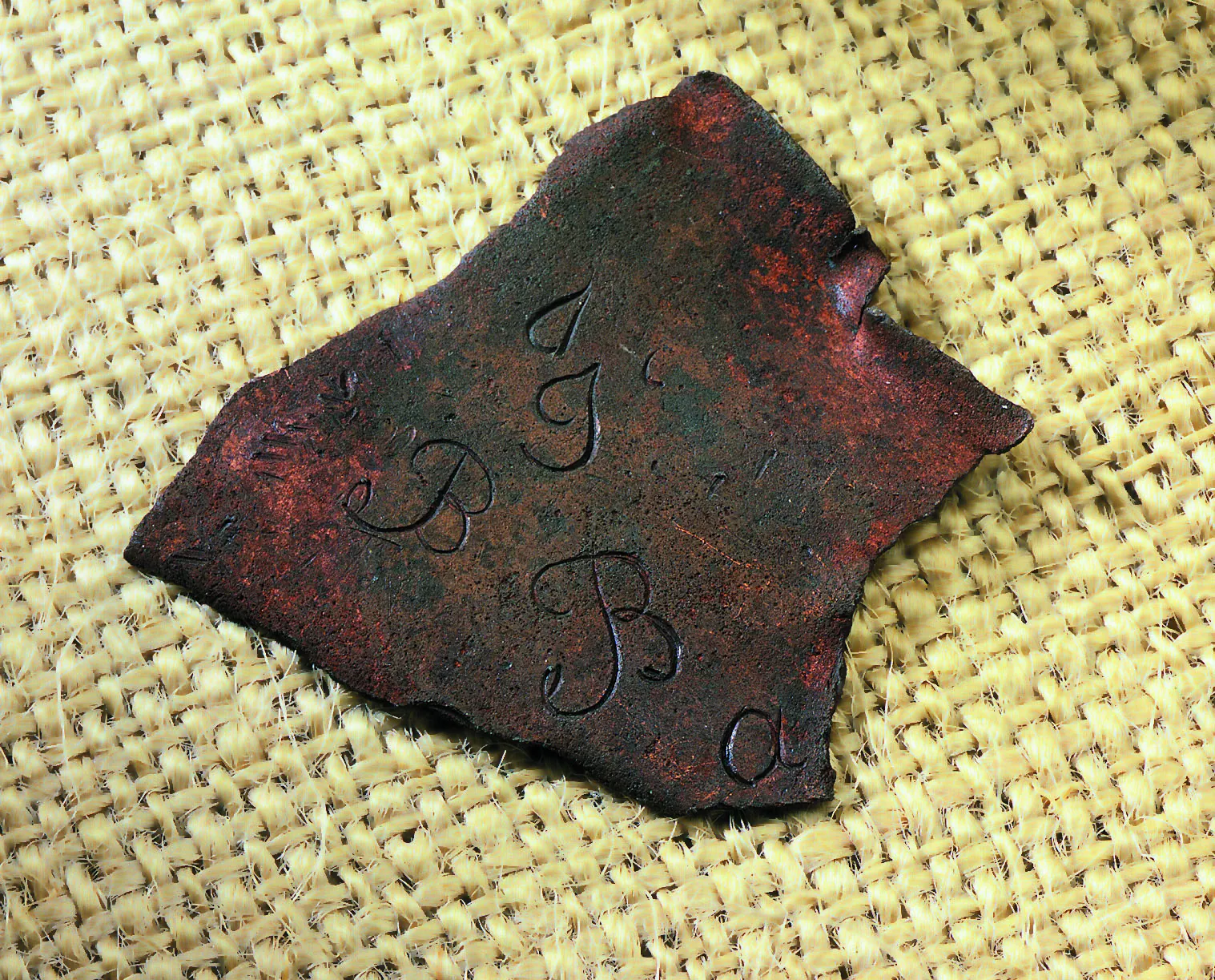 MS2.5109.3This is part of a wax seal that once closed a letter. It was found in the military latrine. We don’t know who “JG” was.