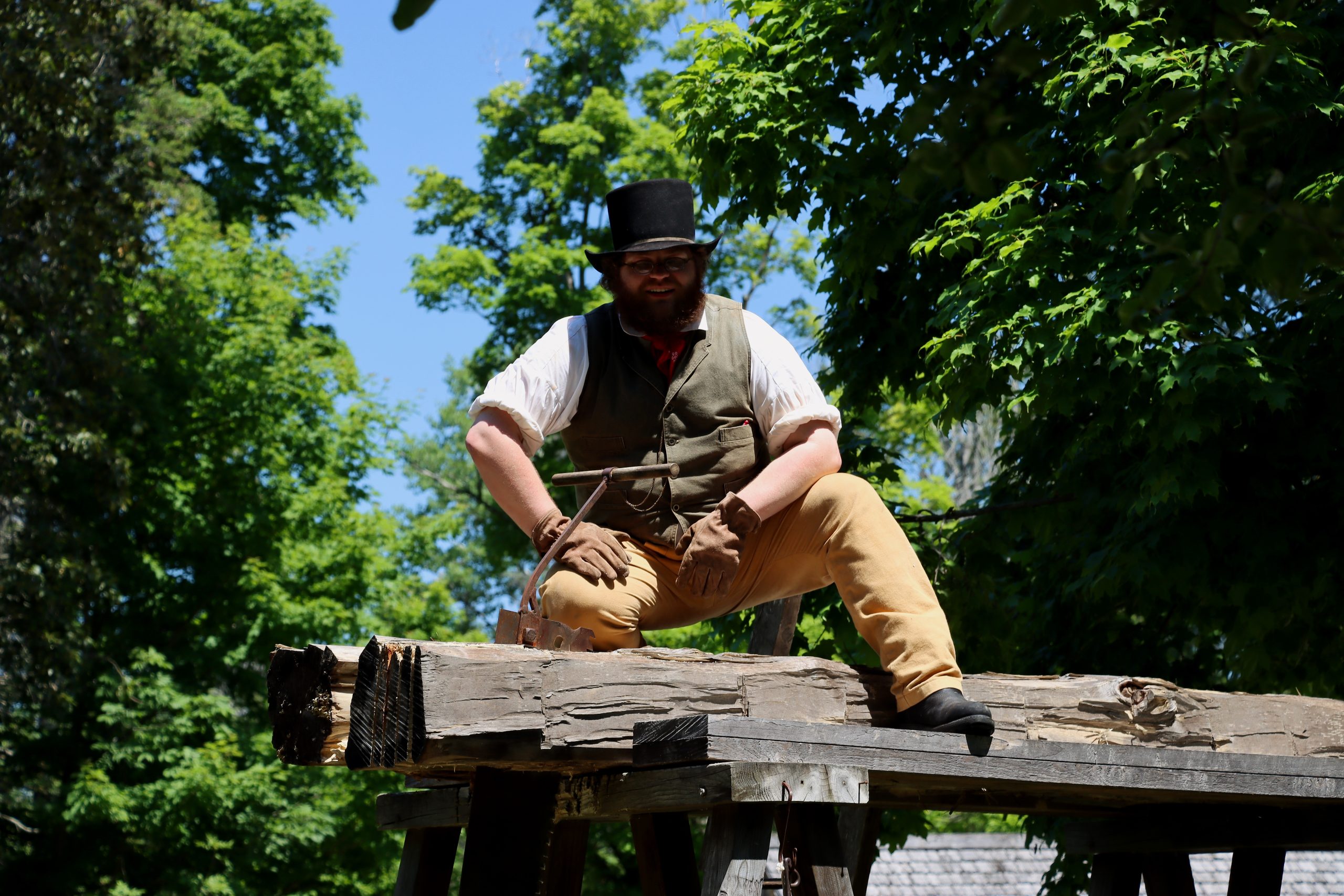 Historical demonstrations by costumed interpreters feature daily demonstrations of a reconstructed 18th century sawmill. Watch as axes are used to turn logs into timbers and help a sawyer make sawdust fly with a pit saw. With a smell of fresh sawdust in the air, the awesome power of the water never fails to impress as the mill springs to life, fed by the pond and ever-flowing currents of Mill Creek. Near the workshop, a tools of the trade programs highlights what life was like beyond the sawmill more than 200 years ago, and by the Mill Pond learn all about the Wonders of the Water. On the wild side, guests will make discoveries daily as wildflowers bloom and wildlife flourishes along the 3.5 miles of nature trails – be sure to check for North Woods Nature programs happening throughout the day.