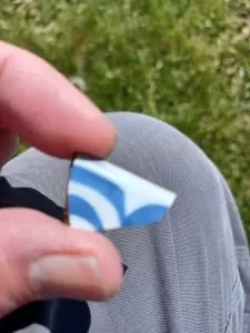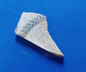 One of the characteristics of this house in previous seasons has been the variety of ceramics recovered. This season has been no exception. So far, we have uncovered a piece of a blue and white tin-glazed earthenware bowl and a base fragment from a scratch blue stoneware vessel. (IMAGE)