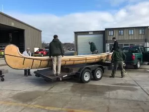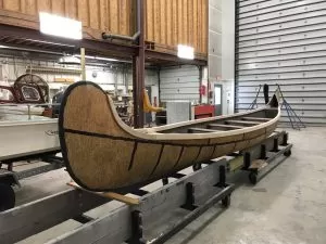 Modern visitors to Colonial Michilimackinac can see examples of all three of the major canoe types. A birchbark Indian canoe is on display in the France at Mackinac exhibit, while a full-sized canot du Maître can be seen in the Visitor’s Center. Fiberglass reproductions of a canot du Maître and a canot du nord make up the setting of the Voyageur Landing, where visitors can meet an interpreter representing a French Canadian canoe crewman and learn more about these versatile watercraft. One of these canoes was refurbished over the winter thanks to the generosity of Mackinac Associates. Join us at Colonial Michilimackinac on June 30-July 1 for Rendezvous at the Straits, a celebration of voyageur culture, to see these canoes in action.