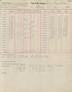 The historical objects from the Chief Wawatam were processed into the collection starting in 1993, however, the archival collection was left unprocessed. In the winter of 2018-2019, Registrar Brian Jaeschke processed the collection of logbooks, maintenance records, company invoices, crew information and other paper items. The logbooks record the many crossings of the straits and the years before and during World War II when the ship was chartered to break ice in several of the Great Lakes. Maintenance records and company invoices attest to the repairs and work done to keep the ship running. Many of the men and women who worked on the “Chief” were from communities on both sides of the straits. Personnel records show that working on the ferries covered several generations of local families.