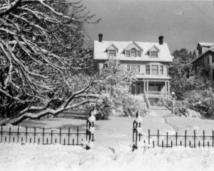 A fire, likely in 1903, completely destroyed both the St. Cloud and Pine Cottage next door. Both were rebuilt on their original foundations by the following year. Photographs of the St. Cloud confirm this fact. The 1870s building was a vernacular Italianate featuring a bracketed porch and a square-sided cupola. The 1904 building is a refined Colonial Revival structure with three pedimented dormers, the center featuring a Palladian window. Other details include second floor bay windows, fluted corner pilasters and a Doric-columned porch.