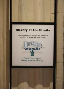 How do you know when an exhibit is sponsored by Mackinac Associates? Easy – just look for the Mackinac Associates’ sponsored signs and plaques. Each details the support made by Mackinac Associates and its members with the Associates logo, like the addition to the Slavery at the Straits exhibit. To help us fund future projects and exhibits, consider becoming a member, donor or sponsor. Your support will help Mackinac Associates continue to assist Mackinac State Historic Parks to protect, preserve and present the historic and natural resources of the Straits of Mackinac.