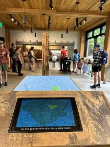 Opened in early June the exhibit Arch Rock: Unsurpassed in Nature’s Beauty at the Milliken Nature Center explores the history and evolution of Mackinac Island’s Arch Rock. The exhibit touches on geological and tourism history with interactive elements such as fossils, rocks, and historic photos of tourists at Arch Rock. The Milliken Nature Center serves as a place to preserve and interpret Arch Rock’s legacy. It also stands as a location for guests to relax before continuing their Mackinac Island State Park adventures.