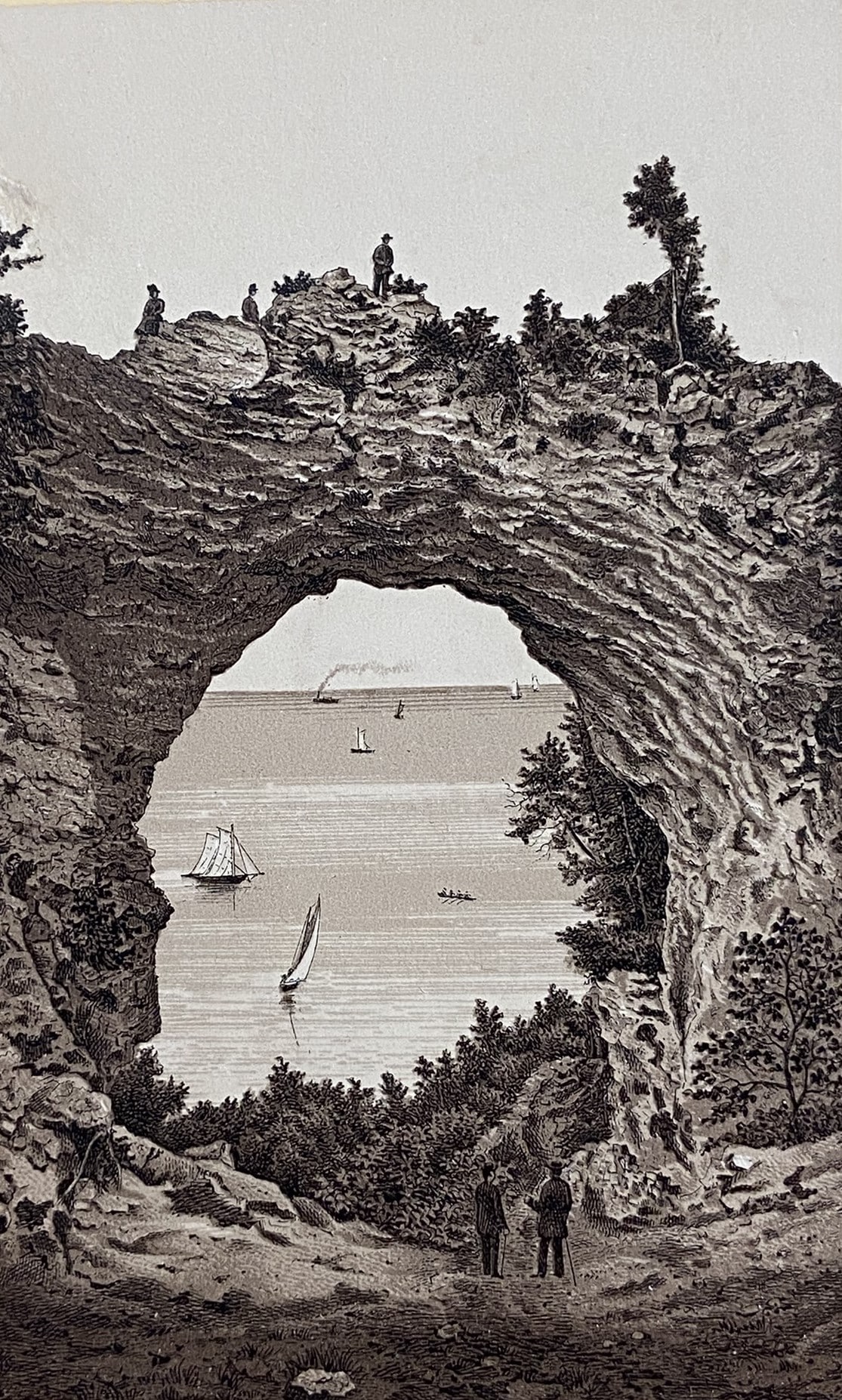 Now, having hurriedly glanced at some of the beauties of Mackinac, we will leave caves, the beautiful drives, the fine trees that cover the island, and above all, the delicious atmosphere, tempered as it is by the presence of the cool waters of Huron, to the visitor’s care, and bid farewell to this beautiful isle of our freshwater seas.”