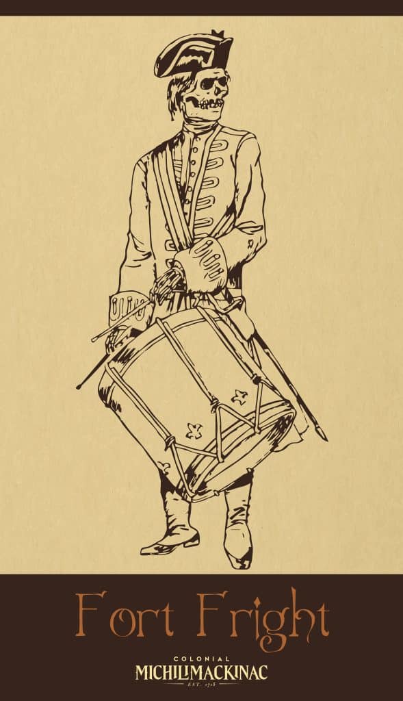 The following is excerpted from Were-Wolves and Will-O-The-Wisps: French Tales of Mackinac Retold, written and illustrated by Dirk Gringhuis. The stories in this book are the basis for Fort Fright, an annual event that takes place in October. Fort Fright 2025 takes place October 3-4 – click here for tickets.