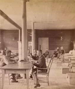 By layering these garments as needed, soldiers could somewhat adapt to changing weather and keep a ready supply of clean undergarments on hand. Although it’s not something that visitors to Fort Mackinac ever see (and would have only rarely seen back in the 1880s), these pieces of underwear were critical to creating the look of the U.S. Army in the late 19th century. Be sure to ask the interpreters about their uniforms next time you visit Fort Mackinac, and don’t forget to check out Mackinac Associates, which helps fund the purchase of uniforms and other supplies every year. Also, if you’re interested in seeing more images of army life in the 1880s, this summer Mackinac State Historic Parks is pleased to offer a new book featuring over 120 images collected by a Fort Mackinac officer: Through an Officer’s Eyes: The Photo Album of Edward B. Pratt, U.S. Army 1873-1902. The three images illustrating this post all come from the book, which will be available in our visitor’s centers and museum stores.
