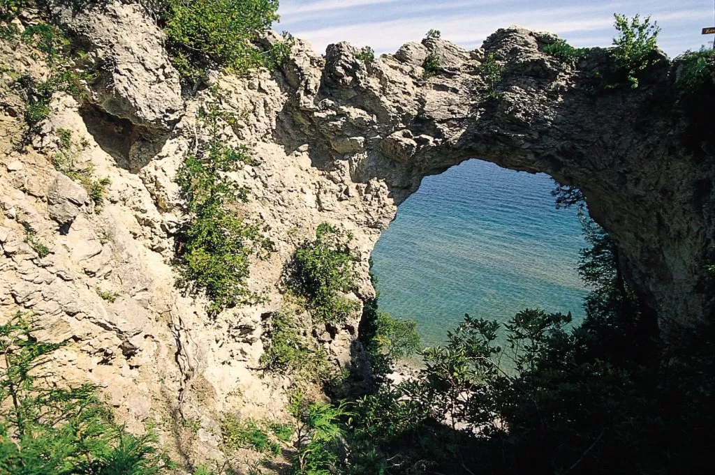 Mackinac Island State Park, also a State Historic Landmark, encompasses more than 80% of Mackinac Island and includes the world-famous Arch Rock, other geological formations and historic sites such as Sugarloaf Rock, Friendship Altar, British Landing, Fort Holmes, Mission Church and Marquette Park. Michilimackinac State Park sits at the base of the Mackinac Bridge and offers unparalleled views of the bridge, Mackinac Island, Straits of Mackinac and Mackinac Island.